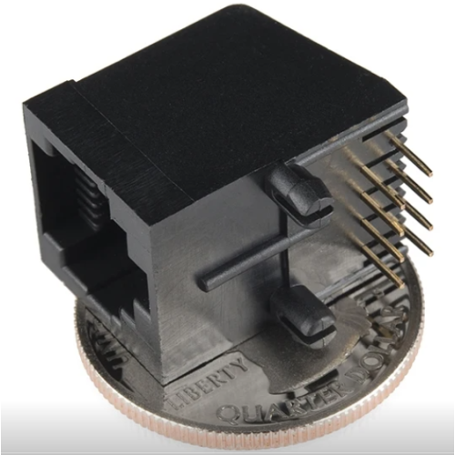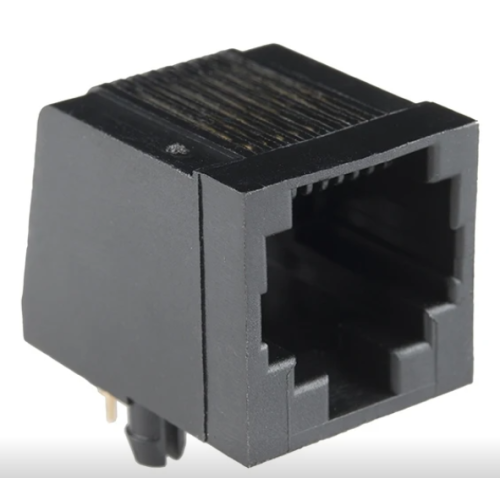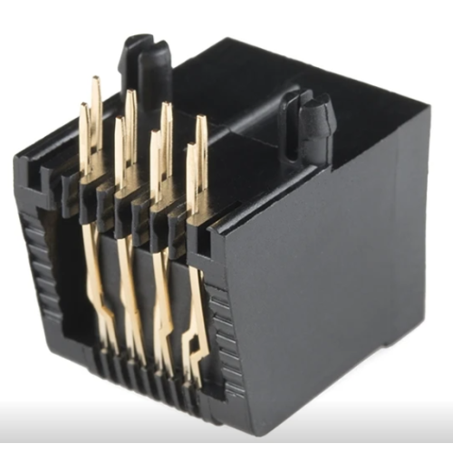 These are simple through-hole RJ45 sockets with PCB mounting posts. These 8-pin connectors are commonly used in conjunction with Cat5, Cat5e, and Cat6 Ethernet cables. Because Ethernet cable is so ubiquitous, these are awesome for projects where you need to string a lot of modules together over a distance.