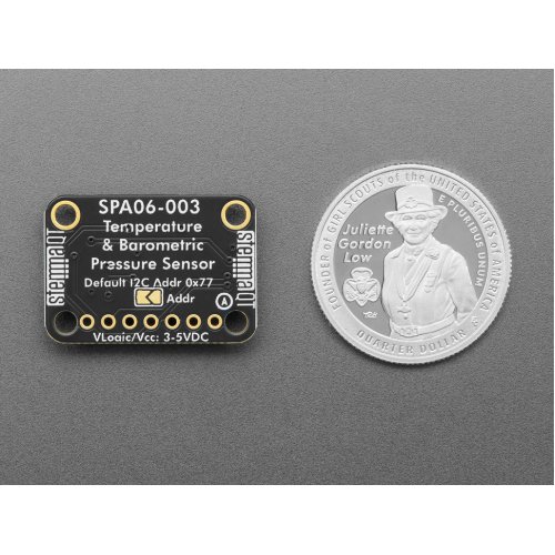 The SPA06-003 can measure from 300~1100hPa (approximately -500 to +9000m from sea level) with typical relative accuracy of ±3 Pa (equivalent to ±0.25 meter) and absolute accuracy of ±30 Pascals, or ±2.5meters. Temperature measurement accuracy is ±1°C. As we mentioned, its not going to be as accurate or precise as the latest BMP series, but the price can't be beat!