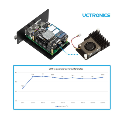 - Efficient Heat Dissipation: This UCTRONICS for Raspberry Pi 5 PoE+ hat is equipped with an Active Cooler that combines an aluminium heatsink with a PWM fan to ensure stable performance under heavy loads