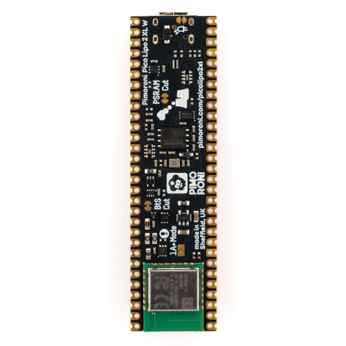 This XL W version is equipped with a Raspberry Pi Radio Module 2, which gives it (2.4 GHz) wireless and Bluetooth connectivity. To make this work without compromising on features we needed a few more pins, so we've taken the liberty of making this board a tad longer than a standard Pico (OK, 24mm) and used the RP2350B chip (the B stands for Big). In return for it taking up a little more room in your project, you get access to a mighty 40 exposed GPIO (spread over two 30 pin rows of headers).