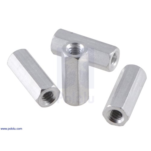 These 1/2"-long hexagonal female-female aluminum standoffs keep parts spaced 0.5 inches (13 mm) apart. They are like elongated, 3/16″-wide hex nuts, with 4-40 threads running through the entire length of each standoff. They are sold in packs of 4.